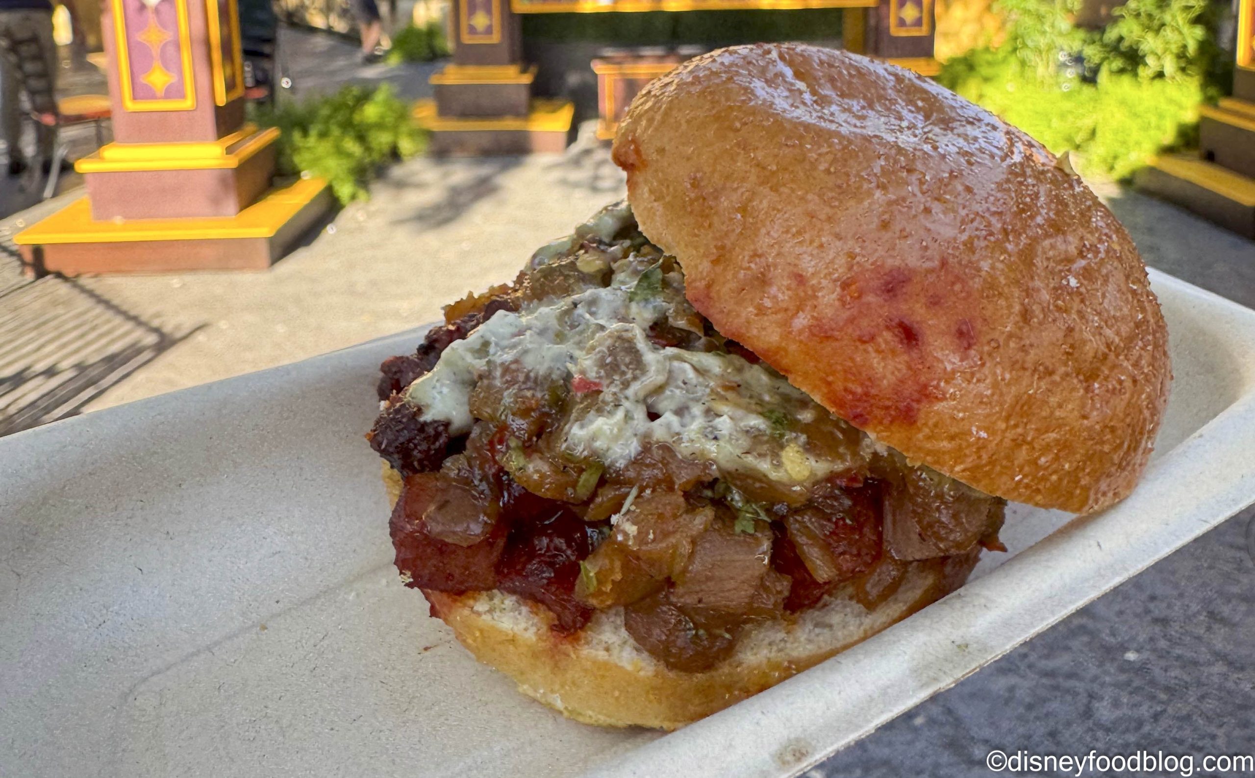 Next up is this year’s new slider addition — the Al Pastor Pork & Pineapple Slider on corn brioche, also priced at $9.25.