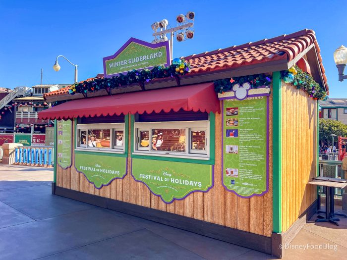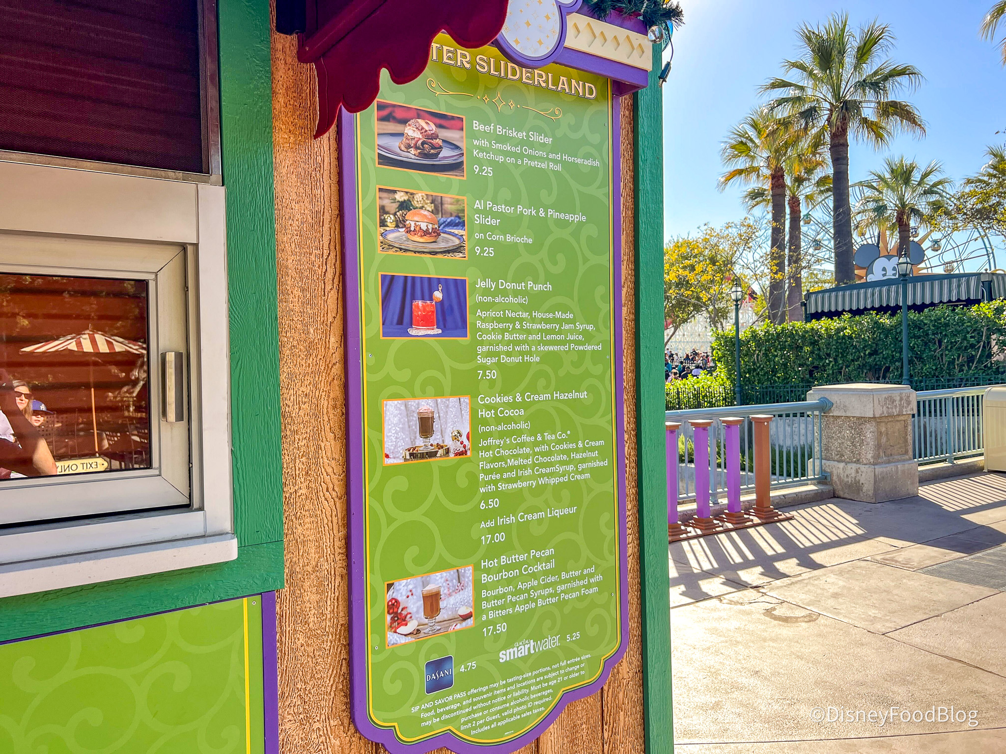 The 2024 Disney California Adventure Festival of Holidays has officially kicked off and we’re checking out EVERYTHING. You’ll be able to visit the festival from now through January 6th, 2025, to enjoy some amazing food and drinks, check out some holiday entertainment, and more! We’re going to focus on food right now, though, because we’re heading over to the Winter Sliderland booth.