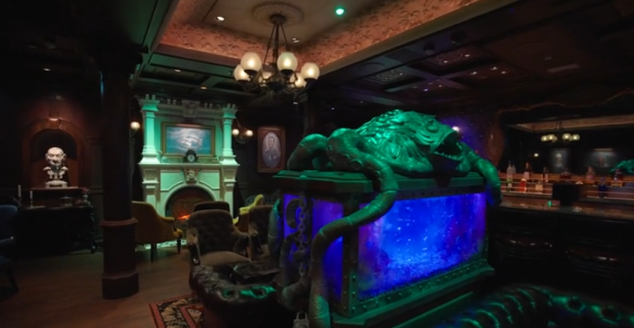 It looks like this aquarium is being taken over by a sea monster — perhaps there will be some sort of interactive feature here like you might experience at Trader Sam’s Enchanted Tiki Room or Grog Grotto! It’s possible that the aquarium is a tribute to Disney Imagineer Rolly Crump, who had previously designed a ghostly aquarium full of the ghosts of dead fish.
