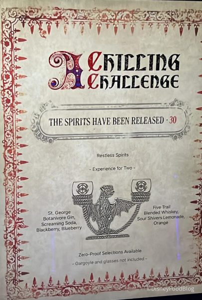 …a secret cocktail for two! The Spirits Have Been Released is $30 and comes with two cocktails — one is made with St. George Botanivore Gin, Screaming Soda, Blackberry, and Blueberry and the other is made with Five Trail Blended Whiskey, Sour Shivers Lemonade, and Orange.