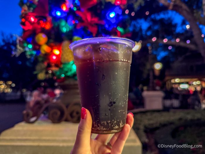 Mickey’s Very Merry Christmas Party also has a Gingerbread Cola for $5 at various carts throughout Magic Kingdom. It’s Coca-Cola with gingerbread syrup. That might seem intriguing, but trust us…this was WEIRD. It’s sickly sweet and tastes like medicine. If you want a soda, just get a regular Coke.