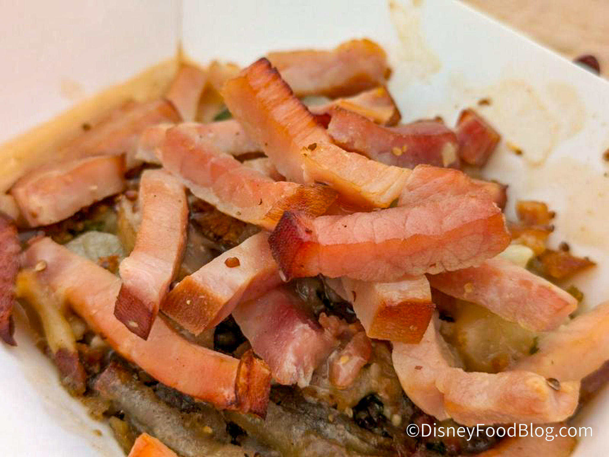 When we had this in 2022, we thought this was a savory and salty explosion — but in the best way. The salty ham pairs so well with the mushrooms and mustard sauce, which has an excellent tang. Last year, we felt the same! The mushrooms were so thick and hearty and paired really well with the ham and mustard sauce. It’s a really warm, savory dish that we really enjoyed. So does this item hold up this year, too?