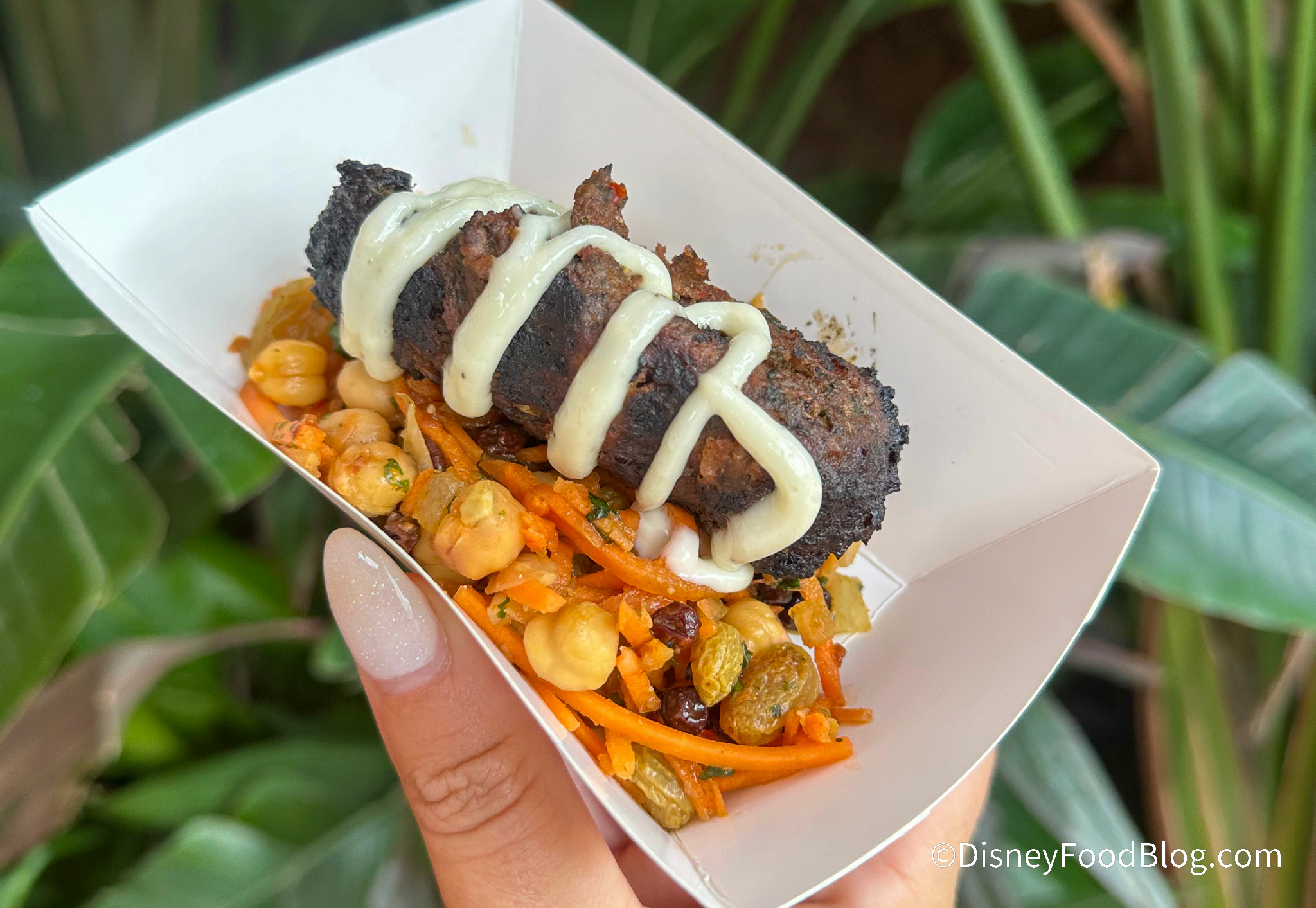 The Grilled Kebabs are something of a staple at Tangierine Cafe (you can often even find them in between official EPCOT Festivals), and they’re served with carrot-chickpea salad and garlic aïoli.