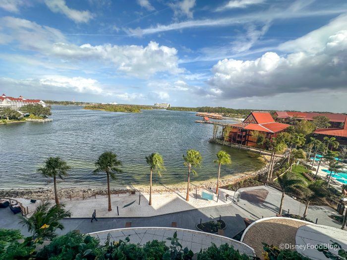 Guests at the Island Tower have access to four of these terraces, which we lovingly refer to as sky terraces since they are positioned in the middle of the hotel, near the top, and overlook Disney World. There are two positioned on either side of the hotel. You’ll get a great view of the Seven Seas Lagoon and Magic Kingdom on one side and a surreal sunset view of the Disney World golf courses on the other.