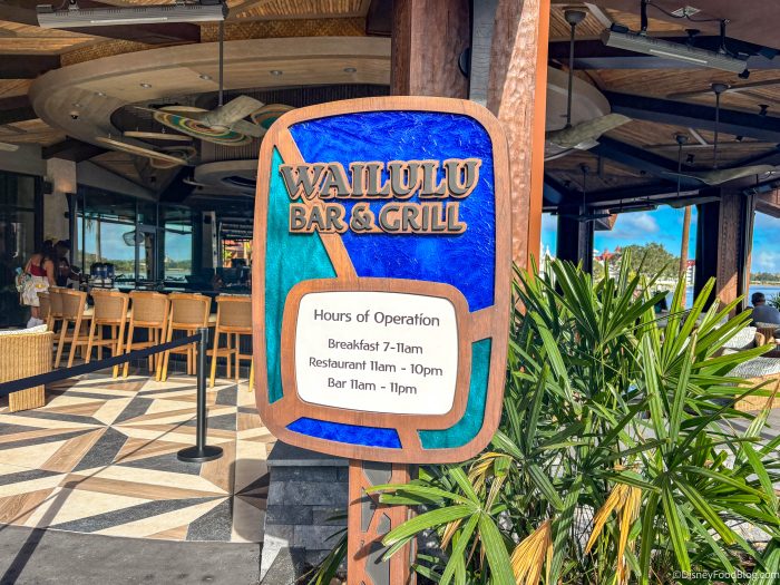 The new dining option at this tower is Wailulu Bar & Grill, which is a mix between a walk-up pool bar and a table service restaurant. You’ll get to look at views of Cinderella Castle and Seven Seas Lagoon while you dine!