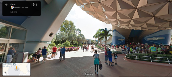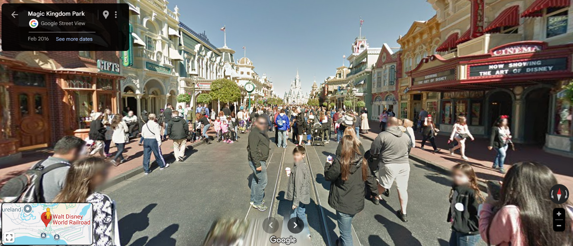 However, if you’ve been to Disney World recently or know about recent events, you’ll recognize that some of these photos are outdated (for example, Cinderella’s Castle is wearing its old colors and not its new colors from a few years ago). So, that could be a downside of using Street View like this.