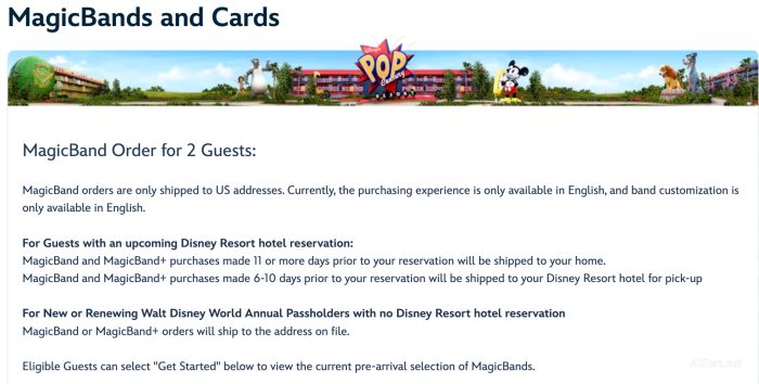 If you purchase your bands up to 11 days before your booked trip, they’ll be mailed directly to your home. If purchased between 6-10 days beforehand, you’ll be able to pick them up at your Disney Resort.