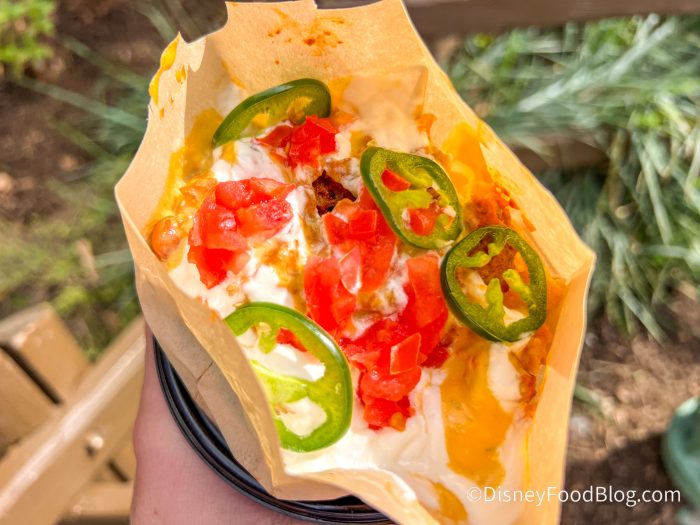 - Corn Chip Chili Pie featuring IMPOSSIBLE Beef: Seasoned IMPOSSIBLE Beef, spicy cheese sauce, tomatoes, sliced jalapeños, and cream (New) — $8.00