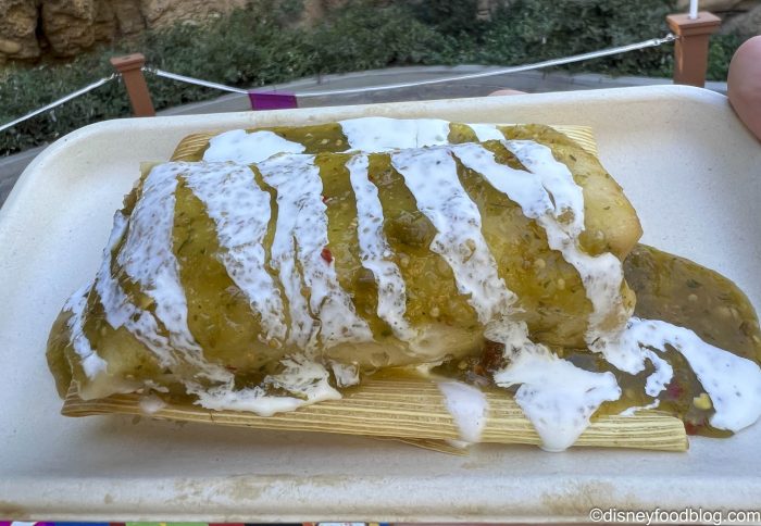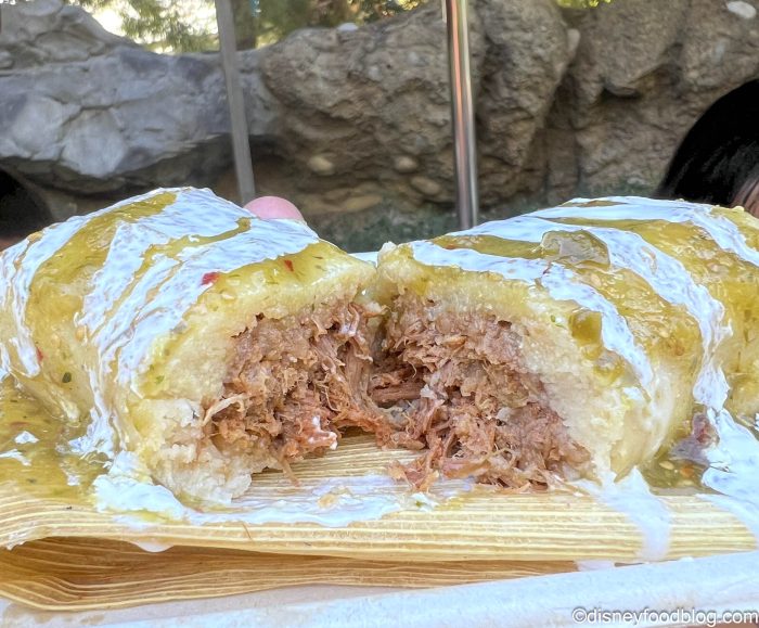 - Barbacoa Tamal de Res with Oaxaca cheese, tomatillo salsa, and crema — $9.75