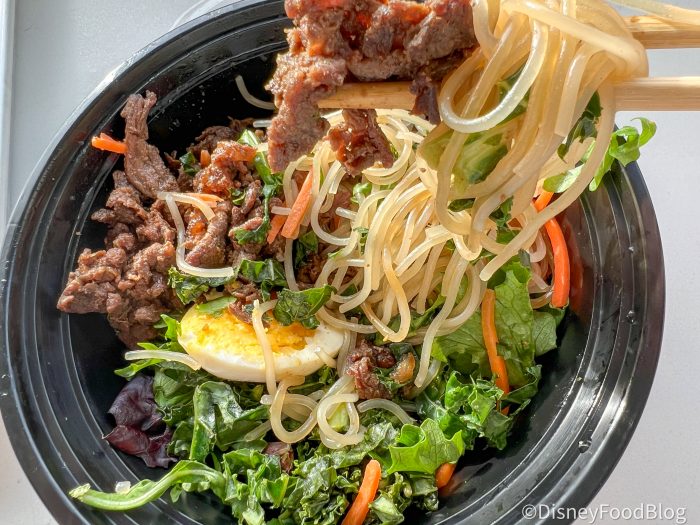 Moving on, we decided to grab a bit from Seoul Sister. We knew our choice was clear the moment we spotted it on the menu, so we ordered the Signature Bowl. We had ours made of beef & egg with noodles (but you have a few other options like rice and salad) for $19. It also comes with Bulgogi Beef, Carrots, Kale, Egg, Sesame Oil, and Spicy Gochu Seoul Sauce.