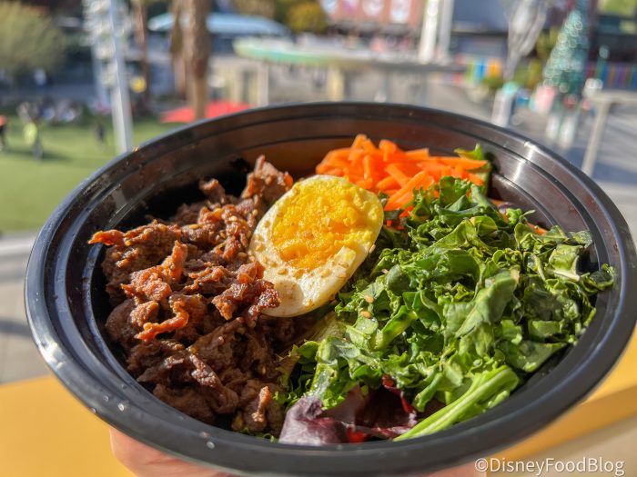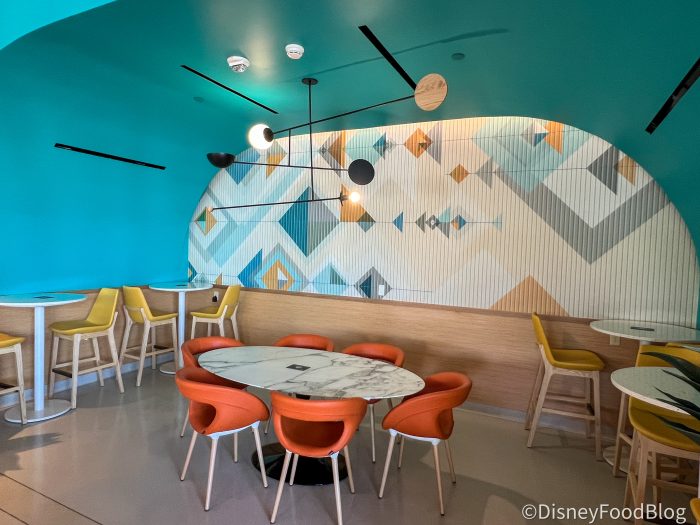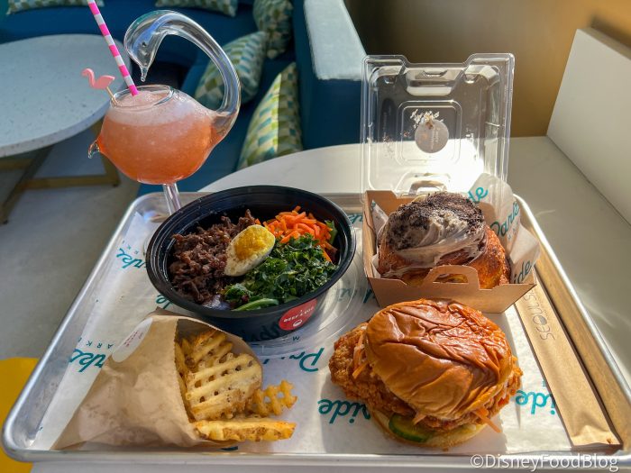 This “second-story” bar, Vista, offers up a beautiful place to pop by for a refreshing drink while taking in the gorgeous views of Downtown Disney from above the hustle and bustle. Here you’ll find a whole array of delicious cocktails and mocktails made with local ingredients and artful garnishes. While we were stopping by for a drink, we also figured we should check out the vibrant food hall and its dining options just to round out our experience and get a true taste of the flavors this new spot has to offer.