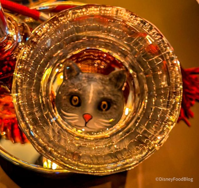While there are many different drinks you can grab at this lounge, only one of them will get you a souvenir cup to take home. The catch? The drink, the Cat’s Meow, costs you $130! Yes, that includes the cup you get to take home, but we found ourselves asking WHY this drink was so expensive.