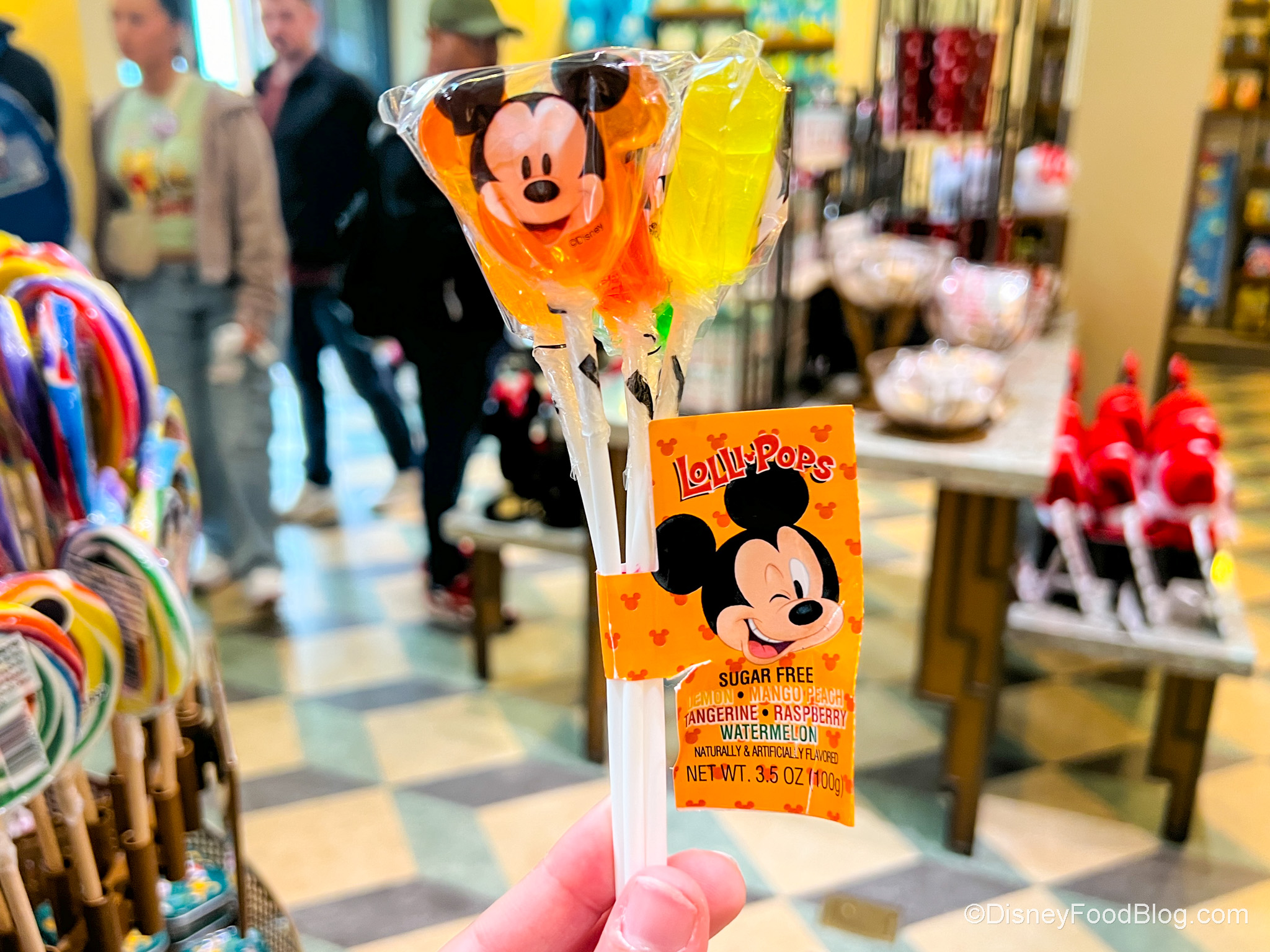 We’ve got a complete breakdown of Disney foods that contain this controversial ingredient that might either get banned or have to be reformulated in the near future. We started our research at Main Street Confectionery in Magic Kingdom, where you can get a lot of pre-packaged candy, which often contains Red Dye No. 3. We worked our way around the parks from there. Y’all — we found SO MANY items that listed it as an ingredient, including those giant lollipops that kids love.