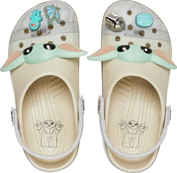 Now, THESE are fun! We adore the Grogu design on these Crocs! These shoes feature slip-resistant treads, 3D Jibbitz charms, and a fun Star Wars graphic print. Check them out while they are on sale!