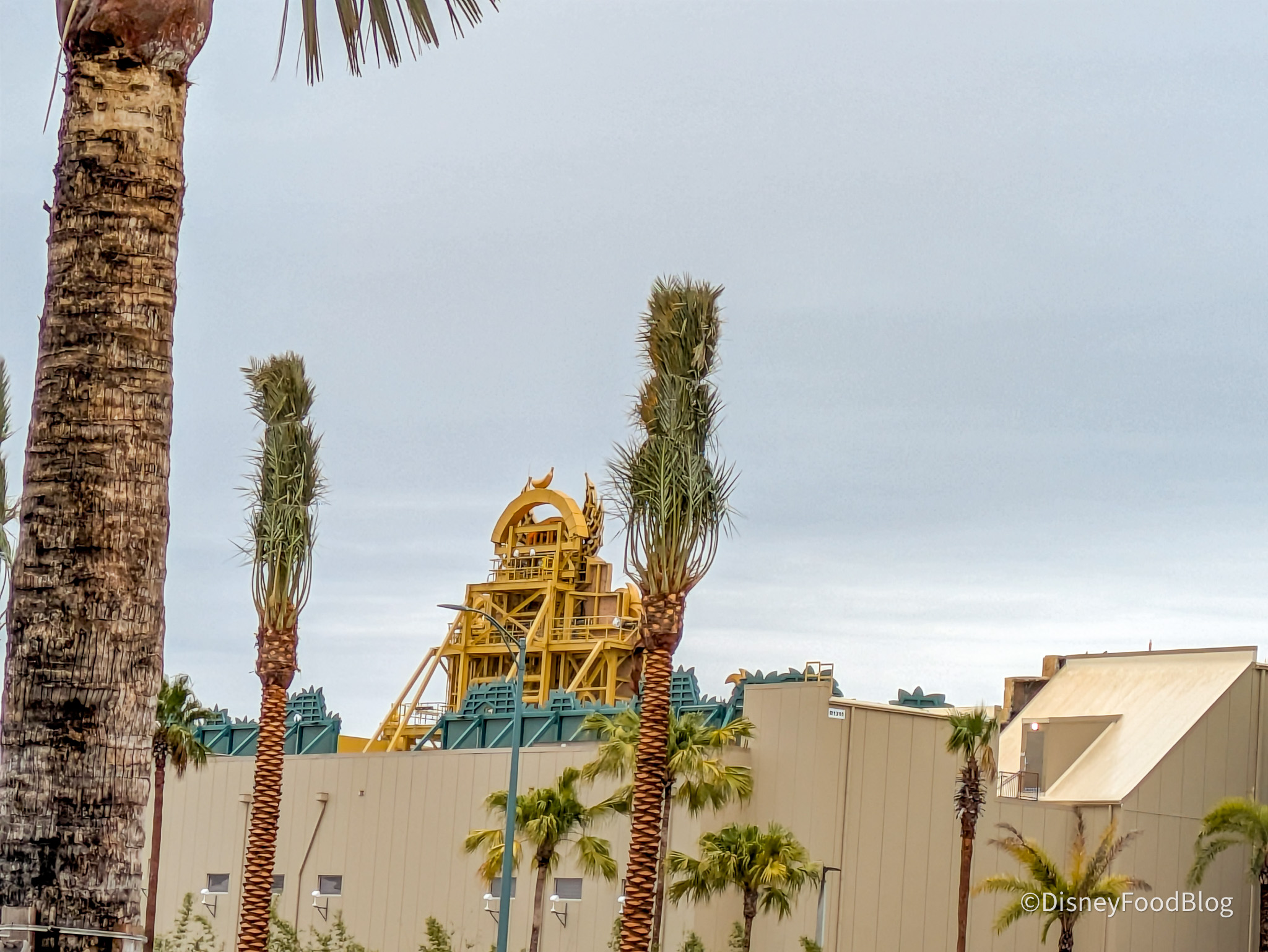 As you look across the street, you can see the tops of the different lands and several attractions! We got a peek at Celestial Park, including some of the coaster Stardust Racers.