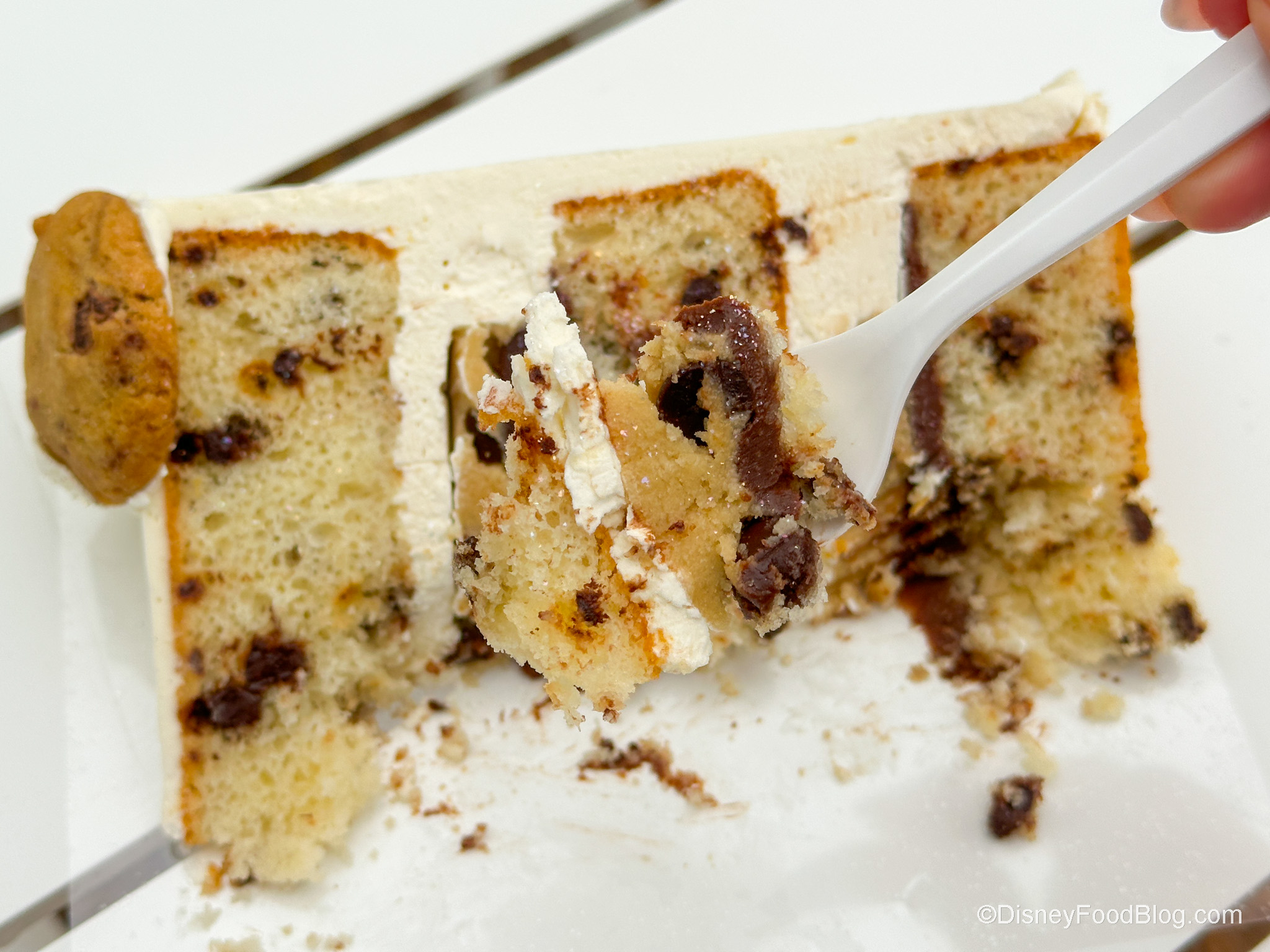 One thing we noticed is that the cake layers are drier than other cakes we had here, but we think it was a decision The Cake Bake Shop made to make up for the wetter cookie dough. All we know is that every bite just MELTED in our mouth. All the flavors really did just blend together, but you still get that gritty consistency of cookie dough, too. How is this even possible?