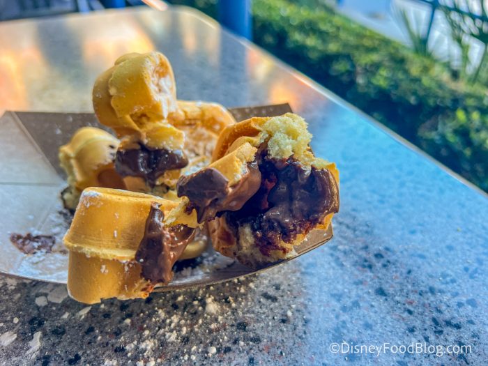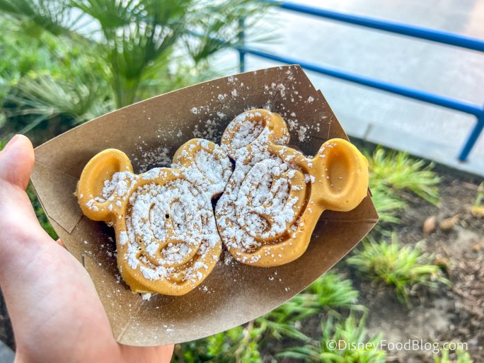The waffles are served fresh and warm, and we loved the amount of powdered sugar on top. The waffles themselves taste like other Mickey-shaped waffles. They are sweet and buttery, and ours had the perfect crunch on the outside while being fluffy on the inside.