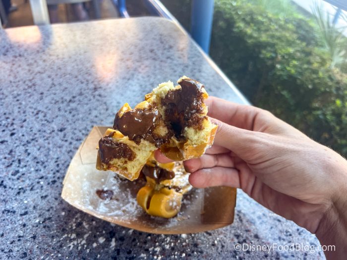 We thought these waffles were very sweet and rich, and we would recommend splitting them unless you are really hungry or really love Nutella. We think these waffles are super tasty and a great choice if you are looking for some chocolatey Nutella goodness stuffed inside of Mickey waffles.