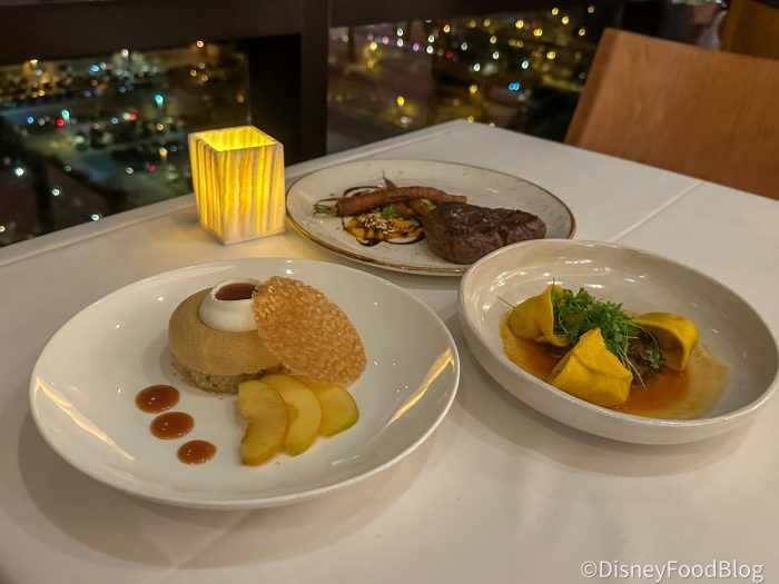 As a whole meal, this was an incredible dining experience — and I use experience over just meal because it was the whole kit and caboodle really. Everything from getting to dress up a little fancier than your regular Disney World theme park clothes, taking an exclusive elevator all the way up to the very top floor of one of the most notable Disney World hotels, to enjoying a beautiful meal with a stunning view as the sunsets AND getting an exclusive view of Magic Kingdom’s nightly fireworks was top notch.