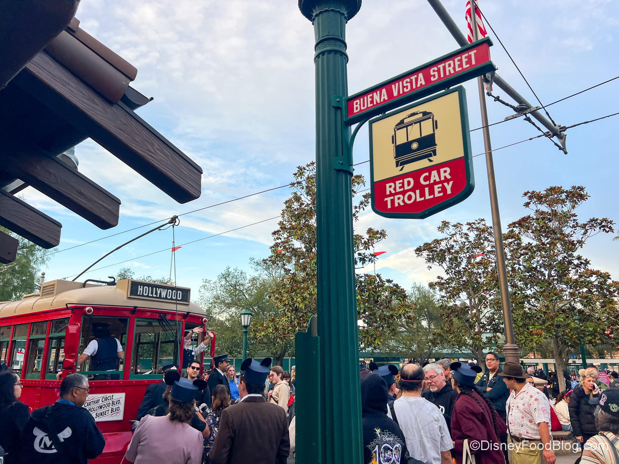 We managed to hop on board for that final trip, though. Yes, it made us a little sad. The ride is being closed because the trolley’s barn will have to be demolished to make way for an Avengers Campus expansion that will bring two new rides to the park. Construction has already started on the expansion. We’re excited about what’s coming next to the park, but we’ll miss the sight of the Red Car Trolley traveling down the street.