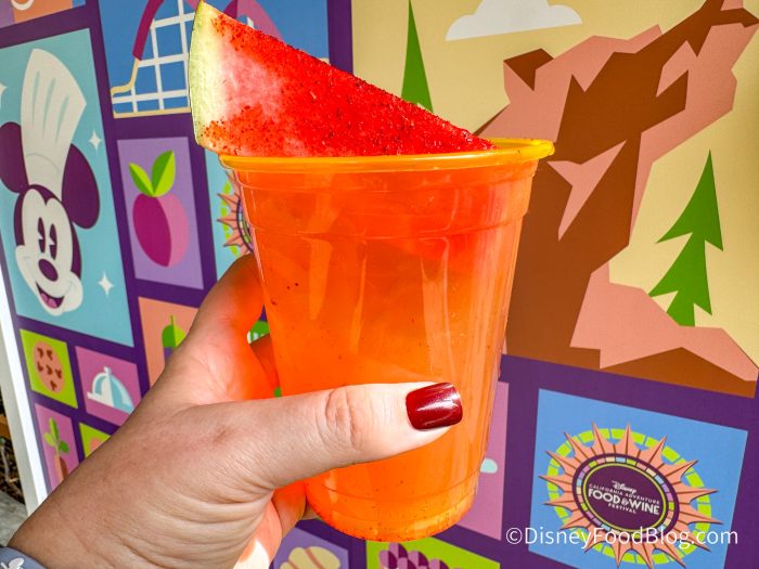 The drink is made with white rum, watermelon liqueur, mojito and cucumber syrups, watermelon purée, and lime juice, topped with Topo Chico, and garnished with watermelon and Tajín twist.Last year we found it to be refreshing, even with the Tajin kick.