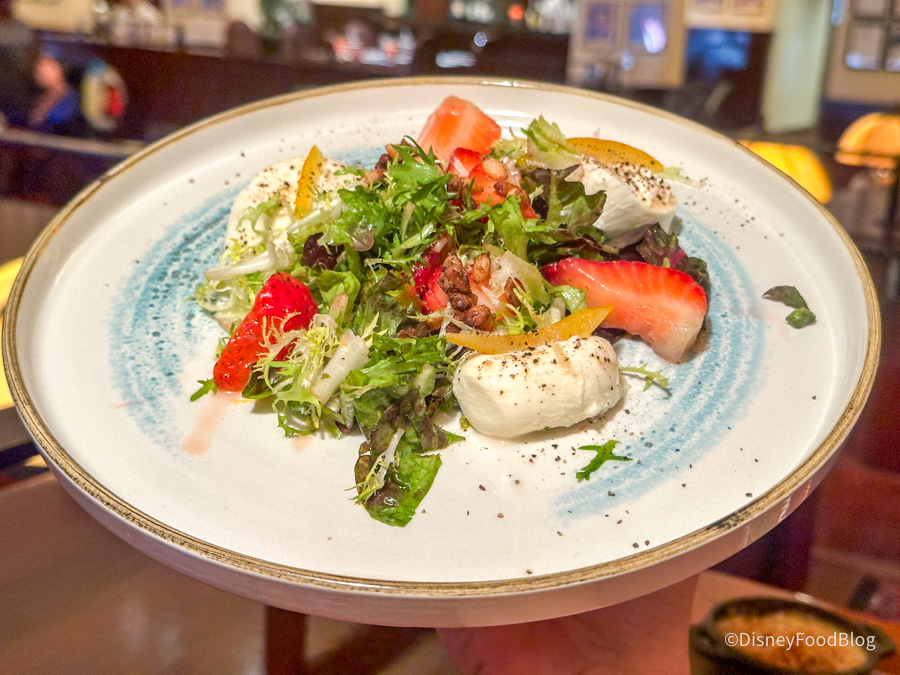 We also ordered the new Grand Marnier Liqueur-macerated Seasonal Fruit Burrata, made with lollo rosso, frisée, caramelized spiced pine nuts, and citrus vinaigrette.