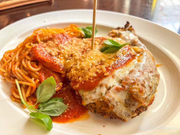 $32 for chicken. Theme park restaurant or not, Tony’s is not known for great food, so spending $32 on a price of chicken with cheese and sauce on it does not appeal to me.