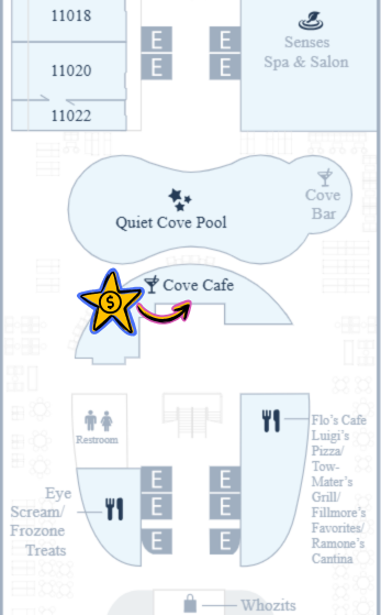 Cove Cafe on the Disney Magic and Disney Wonder is located on Deck 9.