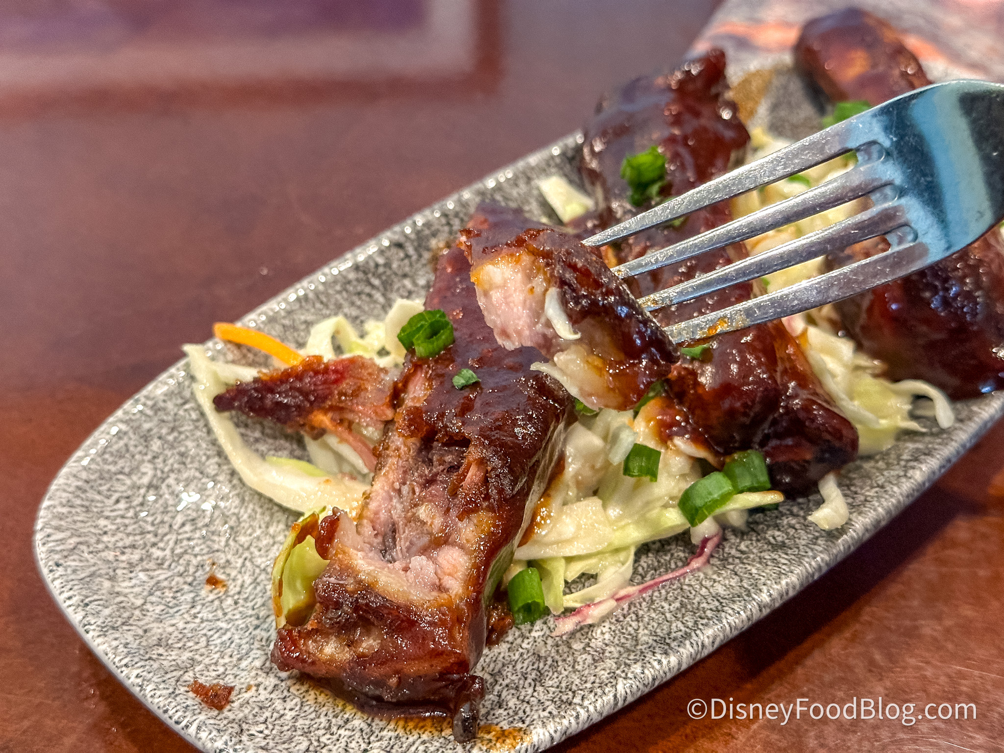 You have to know that these barbecue pork ribs were a real standout. They had a great balance of meat to fat, making them tender and flavorful without being overly greasy. The barbecue sauce tasted similar to the sauce used at Flame Tree Barbecue in Animal Kingdom, which is a solid choice.