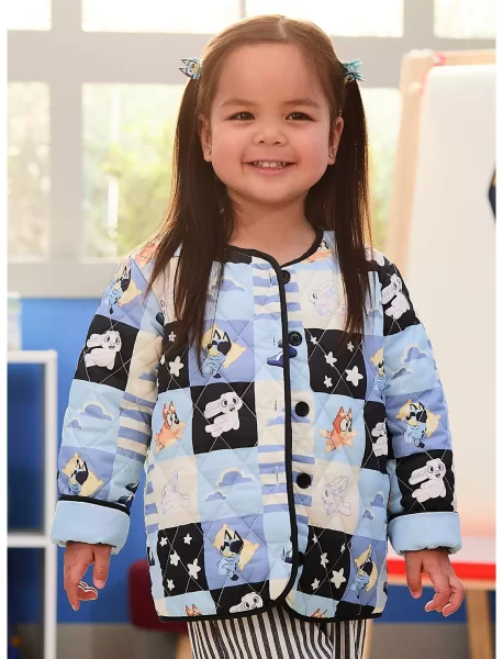It’s hard to say no to a jacket when it has Bluey and Bingo on it! This quilted jacket has clouds, stars, and matching icons. It is so cute, and your little one is going to be the talk of the town in this cool jacket.