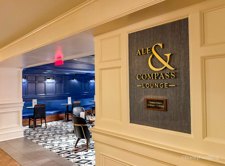 You’ll find Ale & Compass Lounge located just off the lobby of Disney’s Yacht Club Resort. This is just one part of the Ale & Compass dining concept at the Yacht Club, which also includes The Market at Ale & Compass and the Ale & Compass Restaurant.