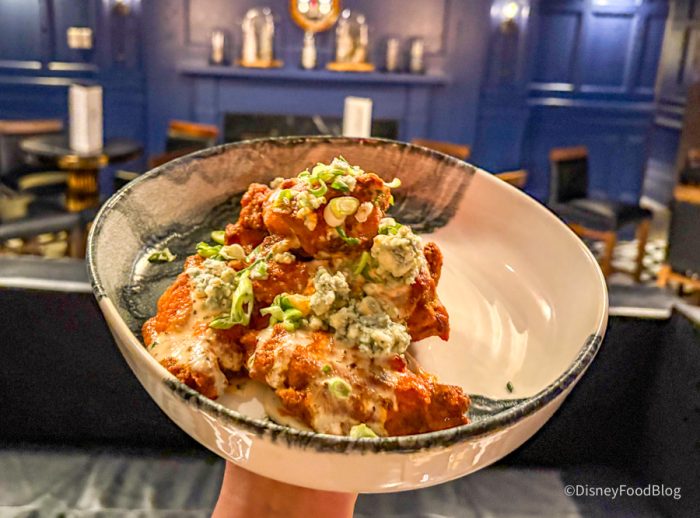 And, to round things out, we also picked up the Crispy Wings for $15. These are tossed in House-made Buffalo Sauce, Blue Cheese Crumbles, and Garlic-Peppercorn Sauce.
