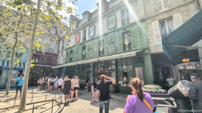 Upon passing through the Portal for the Ministry of Magic, you’ll step into 1920s Paris, directly into a Muggle park. From here, you’ll pass through the Phoenix Arch and into WIZARDING PARIS by way of Place Cachée, which Universal shares as a “hidden, bustling shopping district in wizarding Paris lined with Haussmannian buildings, shops, sidewalk cafés, and historic Parisian domes rising in the distance.”
