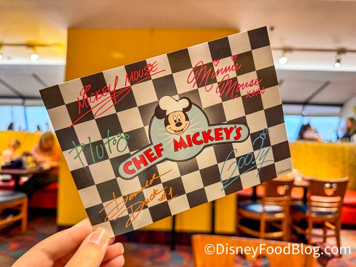 This is a buffet-style restaurant that serves up options for breakfast, lunch, and dinner, but again, we’ve found breakfast to be the most booked-up option very consistently. Here you’ll get to meet all five members of the Fab 5, which again, is what makes it so popular! You’ll get to say hello to Mickey, Minnie, Donald, Goofy, and Pluto in their adorable chef outfits, the only spot in the entire resort you’ll get to see them in this garb!