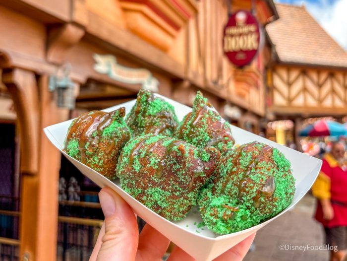 Overall, we really enjoyed these even more without the green coloring. While we love an attempt at creativity, we think the green coloring needs to stick with Halloween! WE KNOW – there are SO many great snacks at Disney World! How do you choose (we don’t want to choose but will blow our budget on Day 1 otherwise)? We’ve got you covered! We have reviewed nearly EVERY snack available at Disney World, and we’ve written a series of DFB Guides about them! Check out our DFB Guide to Walt Disney World Dining + Snacks Bundle for all the details you need to plan your snackin’ and spending. You can even download them to your smartphone – it’ll be like we’re right there with you in the parks!