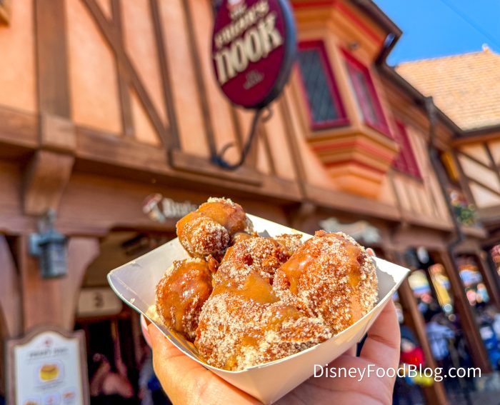 We really enjoyed the bits of apple baked into the dough, which added a great textural element to the donuts. The sauce was still delicious, but we do wish there were more. We would love to see an additional side of caramel. We also think grabbing a side of vanilla ice cream from Storybook Treats next-door would make this even better, almost like an apple pie a la mode.