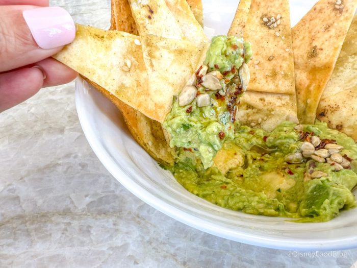 They are well seasoned with some Mediterranean spices, but there’s nothing spicy about this. There is some Aleppo in the form of dried red pepper flakes on top, but they’re not super hot. The smashed avocado cools that down very well. This was not blended smoothly, and there were chunks of avocado in it. So, if you like a blended dip or you have a textural thing where that’s what you want to eat, you might have a little bit of an issue.
