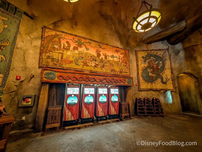 There’s even the Chief’s chair and tables you can sit at! The whole restaurant was dark and filled with air conditioning, making it a great place to hang out and rest before exploring the rest of the park. This restaurant continues to bring in the ancient vibes of the land, and you’ll feel like you entered How to Train Your Dragon and became a citizen of Berk.