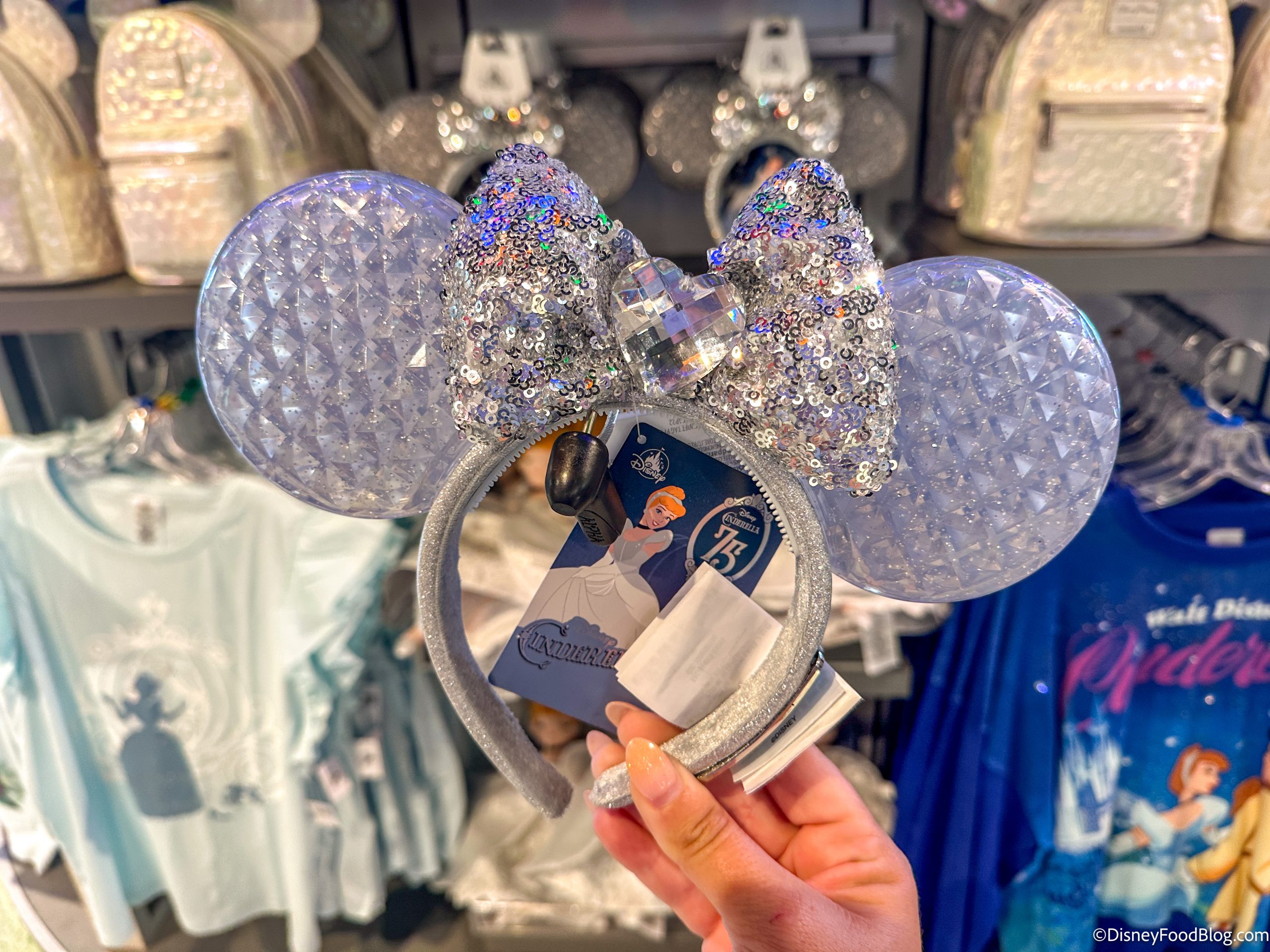 It was love at first sight when we spotted the stunning Cinderella Minnie Ears. The silver sequin bow with the heart in the center gave us total glass slipper vibes, and the glittery ears are made to catch all of that Florida sunshine.