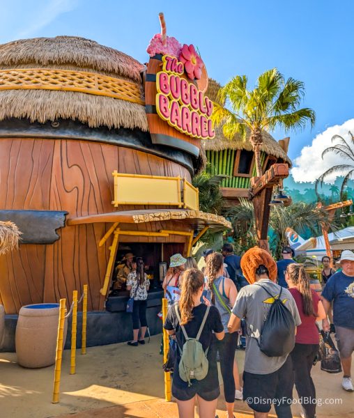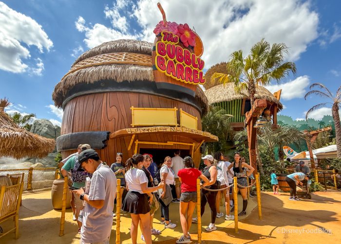 The Bubbly Barrel is a snack stand located in the Donkey Kong Country section of SUPER NINTENDO WORLD at Epic Universe. According to the Universal website, this is where “you’ll find the perfect refreshment for your adventures in the jungle.”