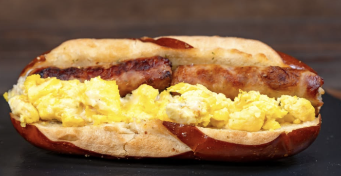 Next, Disney revealed a handful of new breakfast items. First up is what we think will be our favorite — the Breakfast Cheesy Pretzel Bread at Maurice’s Treats! This spot is known for its cheesy garlic pretzel bread, but this dish adds scrambled eggs and sausage for the perfect breakfast.