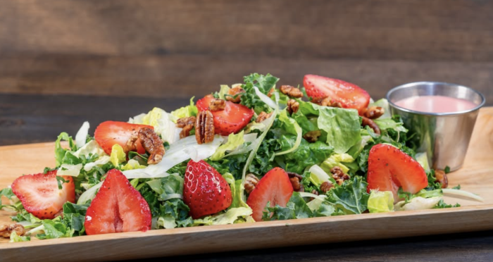 The plant-based Strawberry Pecan Salad with romaine and kale mixed greens, fennel, strawberries, candied pecans, and strawberry vinaigrette is coming to Royal Street Veranda.