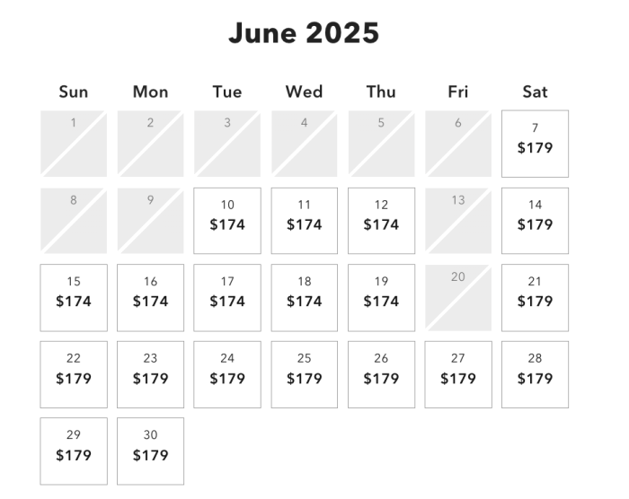 As for June, dates are beginning to sell out too! Almost the entire first week of the month is sold out, with the exception of Saturday, June 7th. Additionally, June 8th, 9th, 13th, and 20th are now sold out as well.