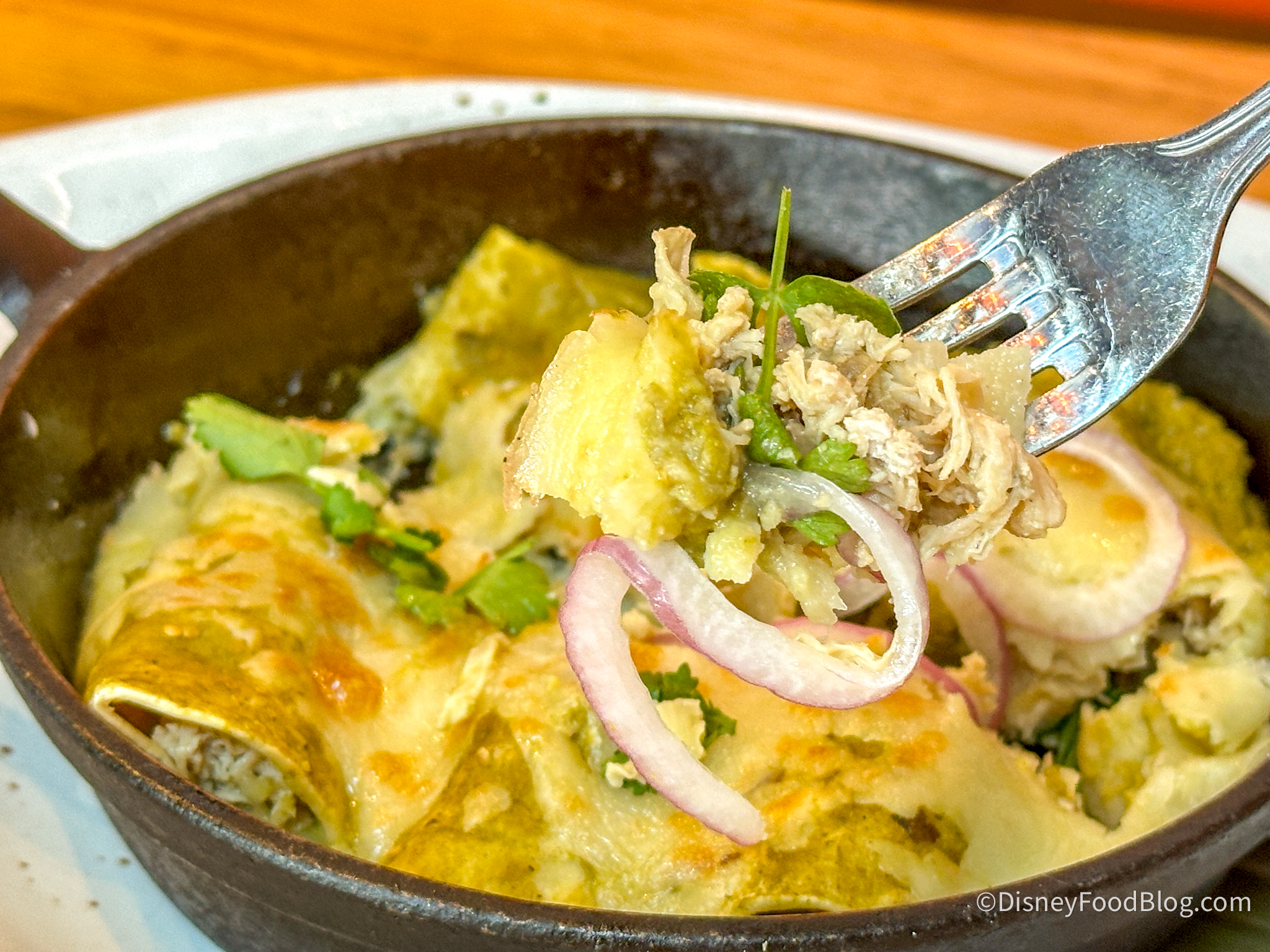 Next was the Creamy Chicken Enchiladas Suiza for $27. This is Just-made corn tortillas, chicken and poblano rajas filling, tomatillo-cream sauce, Queso Chihuahua, sliced red onion, cilantro leaves (contains dairy).