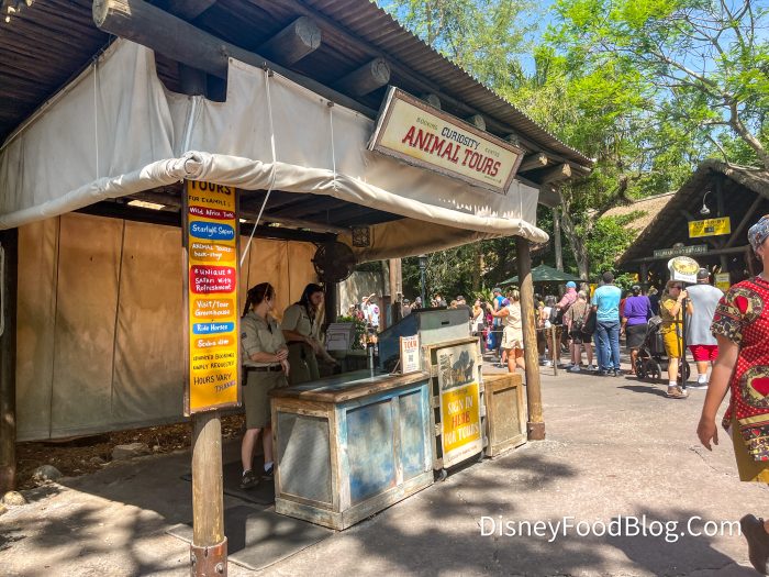 This tour is an additional fee, but it’s only $39 per person, which feels like a steal in Disney World. To start off our tour, we checked in for our designated time at the Animal Tours booth right outside of Kilimanjaro Safaris. There, we met our tour guide, and they kicked off the experience.
