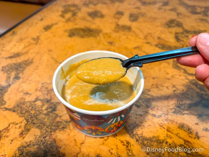The soup has a great thickness, enough to stay on your spoon easily, but not so much that you feel like you are eating a mousse. The flavors of this soup reminded us of a pumpkin pie filling, but not as thick and not quite as sweet. However, we definitely feel like this soup is on the sweeter side.