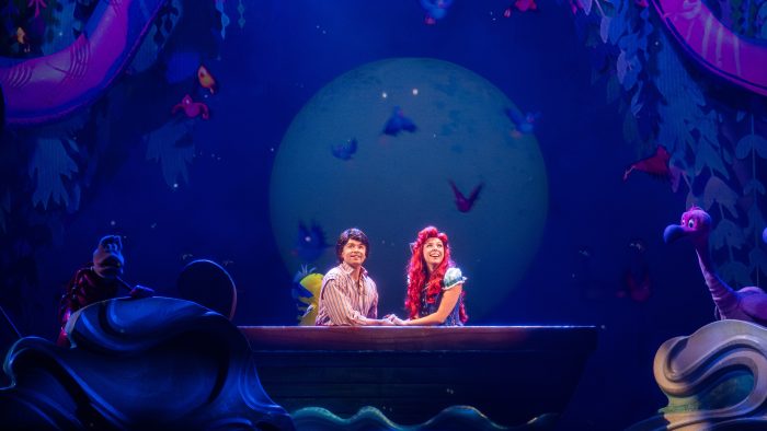 The Little Mermaid — A Musical Adventure will be a retelling of Ariel’s story from the animated The Little Mermaid movie. Expect to see a lot of familiar faces, including Ariel, Prince Eric, Max, Flounder, Sebastian, Ursula, and more. Disney even recently confirmed that Ariel’s sisters will also appear in the show. Now, let’s take a look at some of the photos Disney just dropped for the show. So here’s the “Under The Sea” number:
