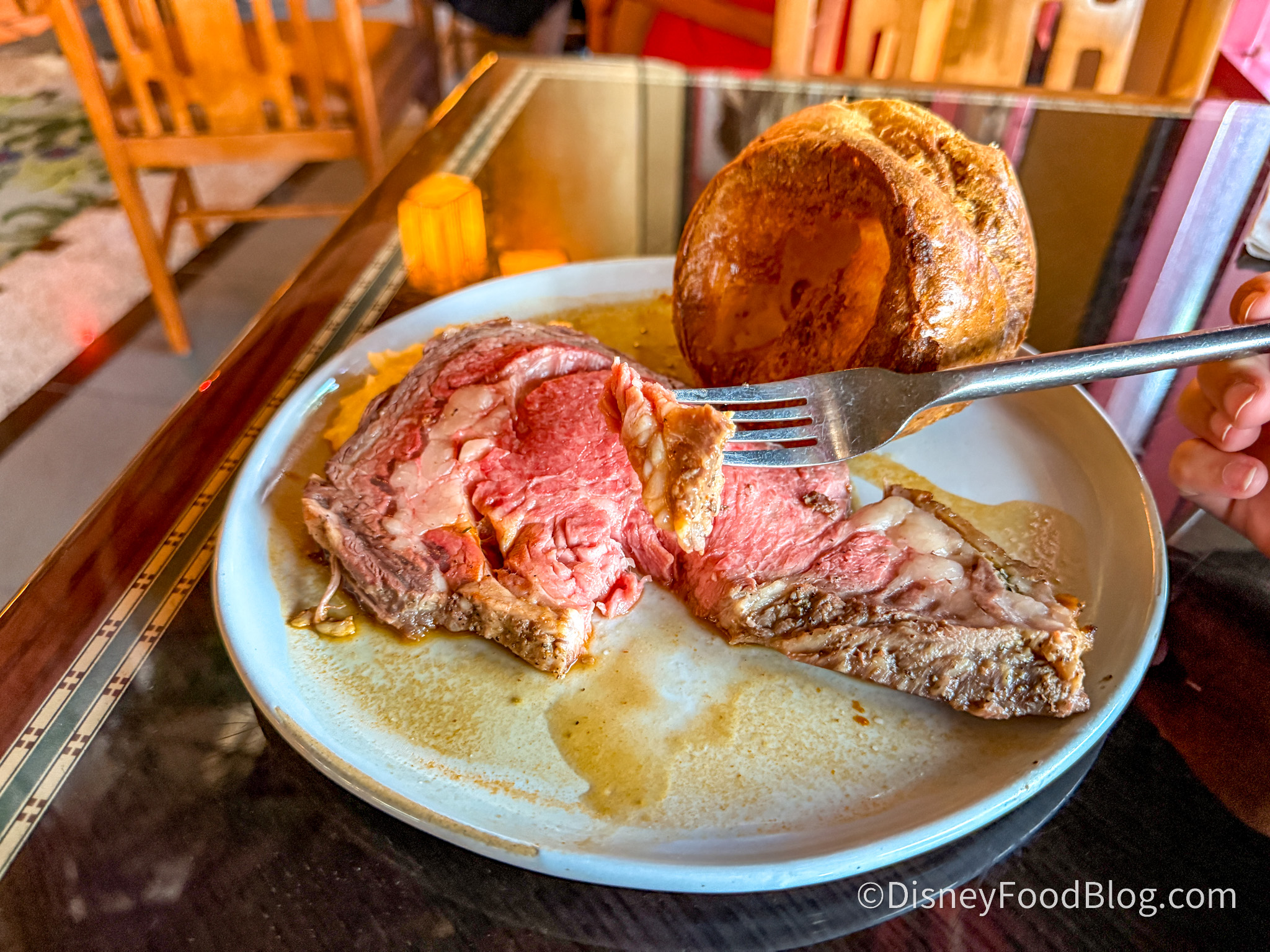 The potatoes weren’t our favorites and brought a stronger sour taste than we like, and we thought the carrots were not very flavorful. Our popover was dense, and while it wasn’t number one in flavor, it soaked up that delicious jus.