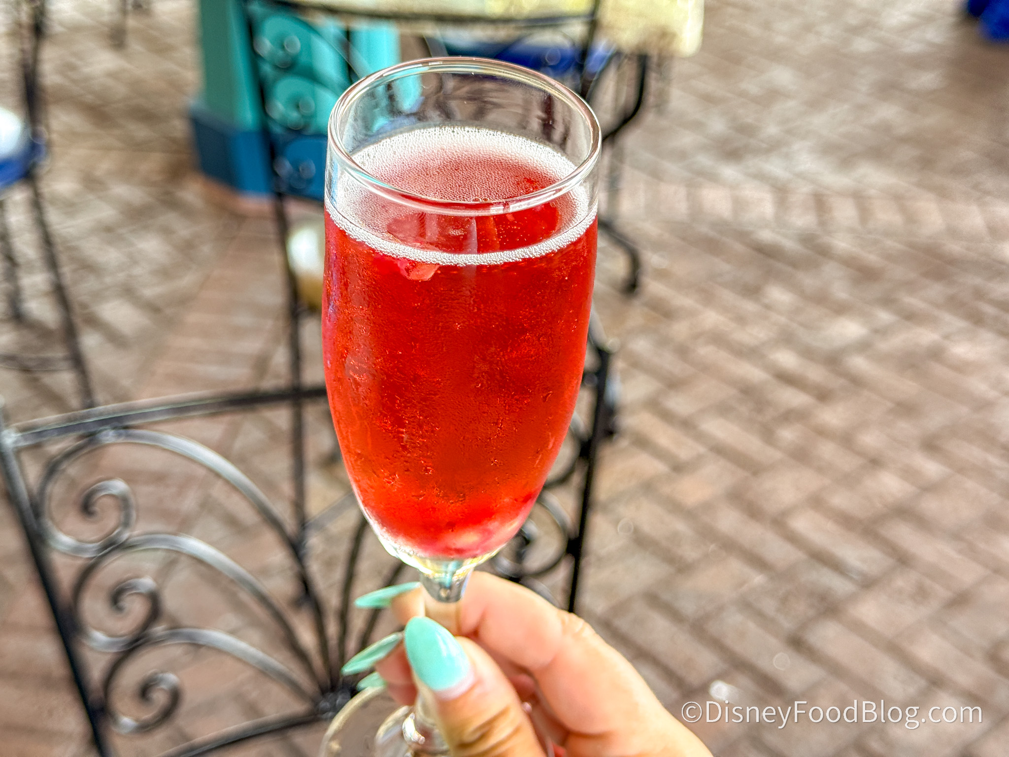 Mimosa fans are going to be obsessed with this one. It was cold and bubbly, and the pomegranate flavor was very mild with some tang, while the mimosa side of the drink was strong. The seeds either float to the top or bottom, so if you want to eat them, you can, but if you don’t love the crunch, you can easily avoid it.