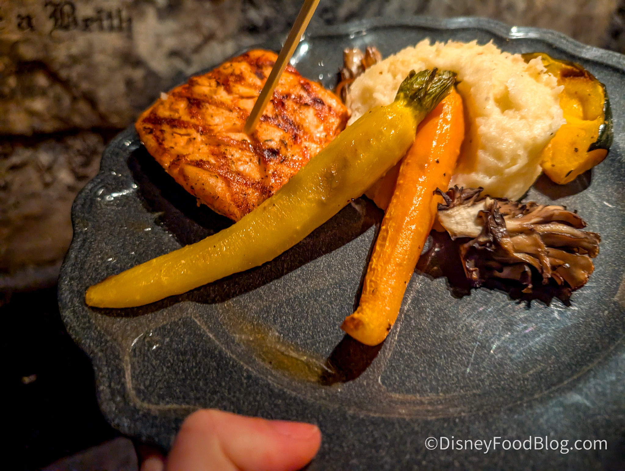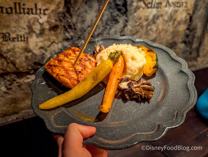 What were the stars of the dish? The potatoes and veggies! The potatoes were creamy but not overly decadent, bringing a lighter feeling to the dish. The root vegetables were cooked well and seasoned beautifully. We loved how this dish was filling, but we didn’t feel stuffed at the end. Overall, it was a lighter dish with classic elements done well. We’re definitely having the salmon again because finding filling and lighter dishes in a theme park is not an easy feat.